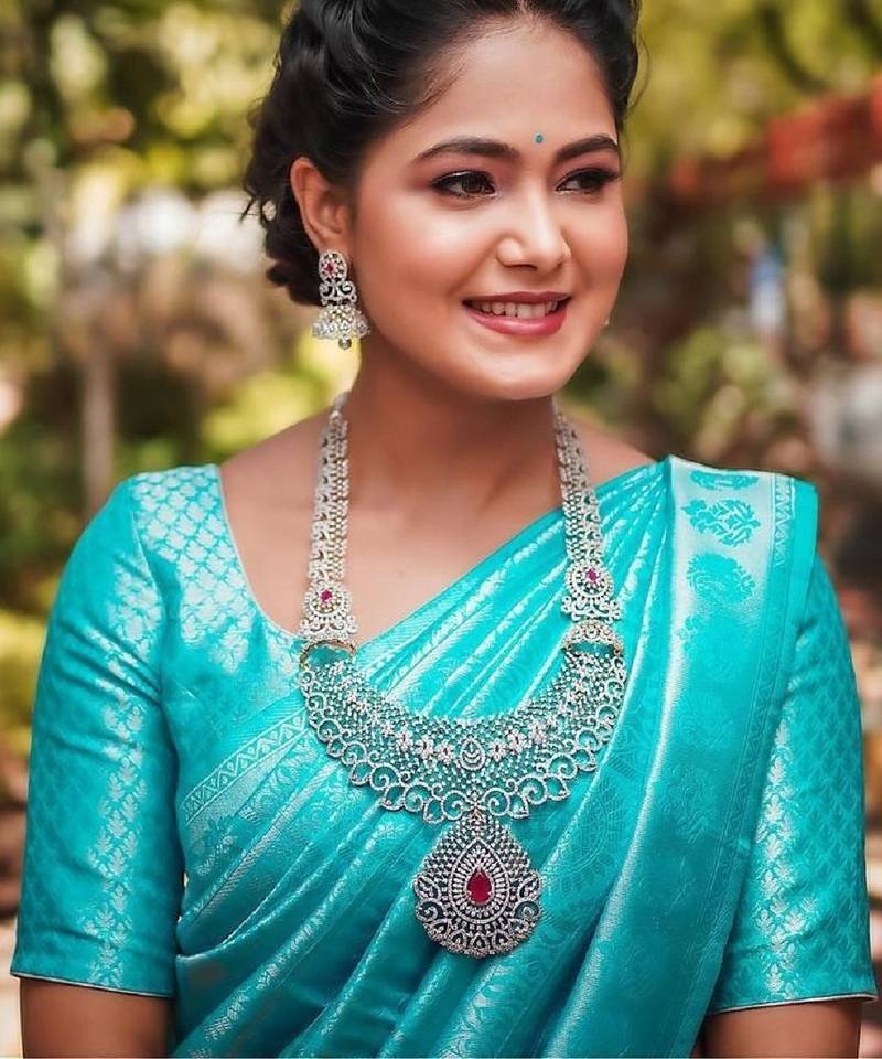| • | Blouse | : | Color- Sky Blue / Fabric- Banarasi Silk |
