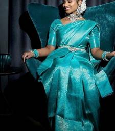 Sky blue soft silk blend banarasi jacuard work designer party wear saree with unstitched blouse piece