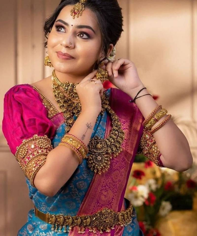 | • | Blouse | : | Color- Pink / Fabric- Banarasi Silk |