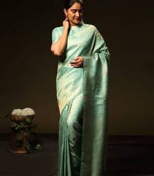 Turquoise soft silk blend banarasi jacuard work designer party wear saree with unstitched blouse piece