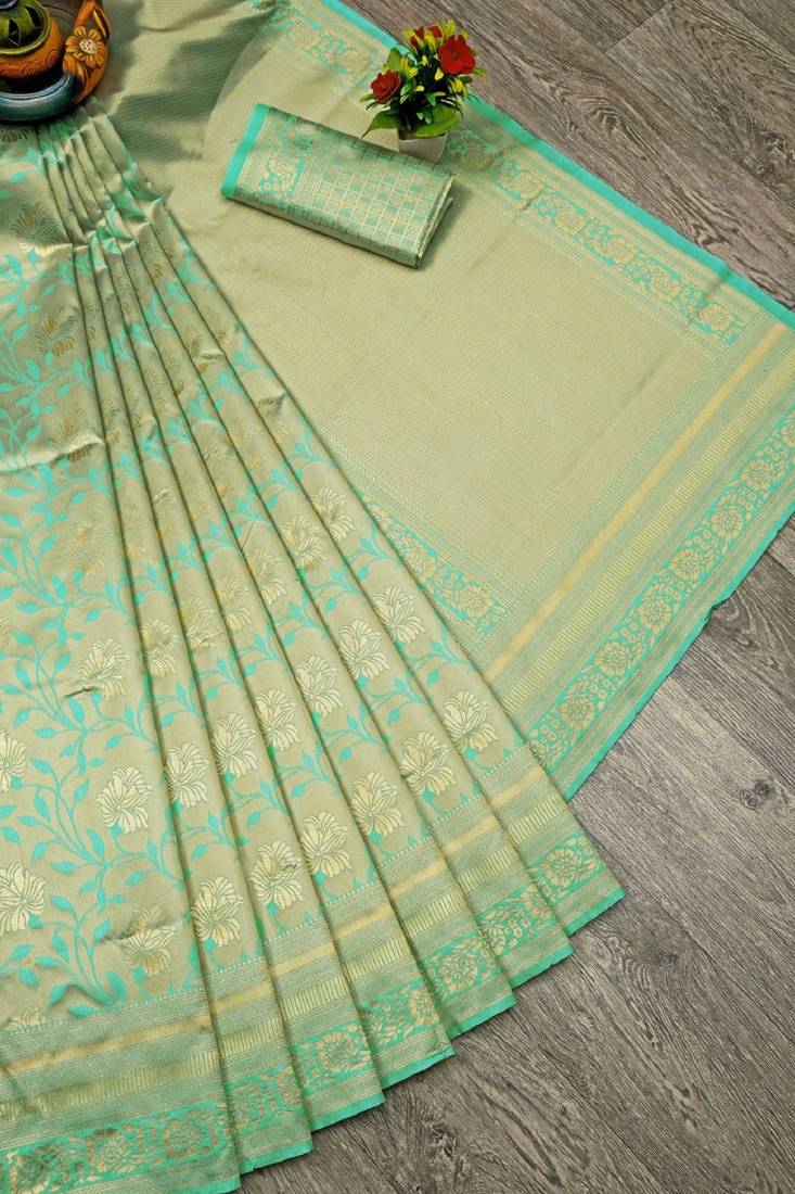 | Product Name | Turquoise Soft Silk Blend Banarasi Jacuard Work Designer Party Wear Saree With Unstitched Blouse Piece | |