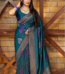 Turuoise soft silk blend banarasi jacuard work designer party wear saree with unstitched blouse piece