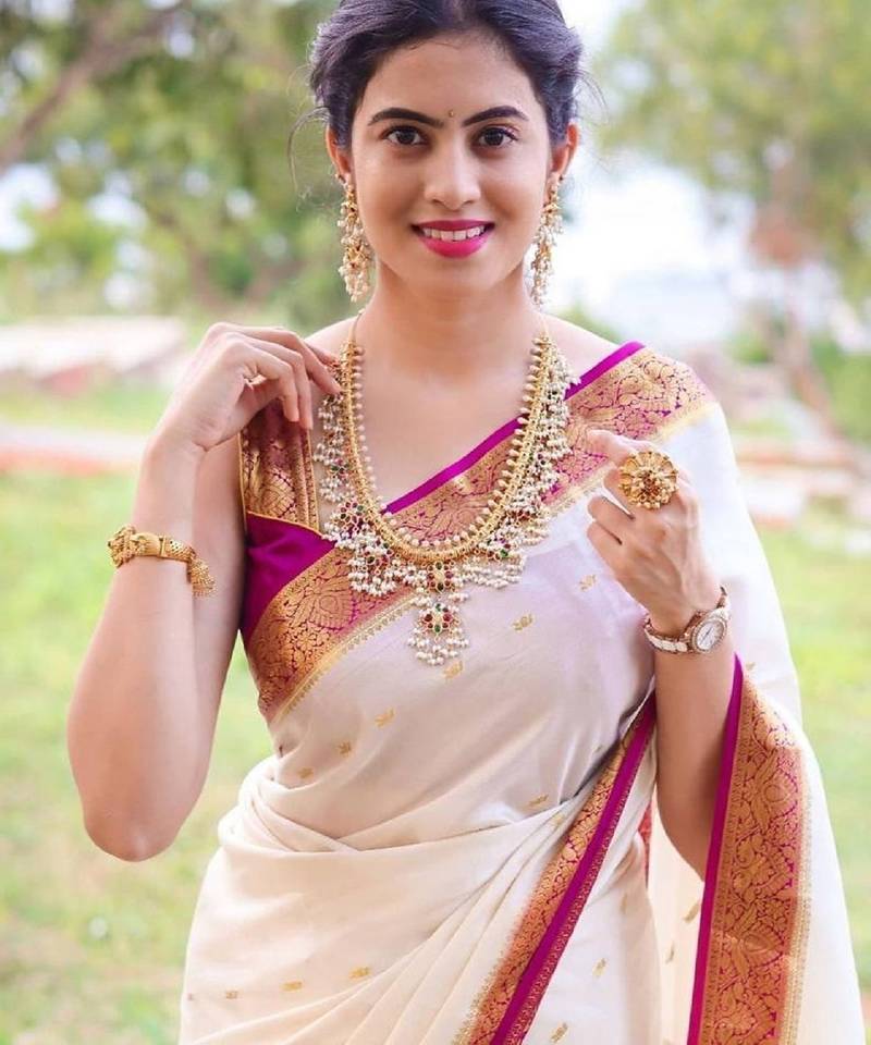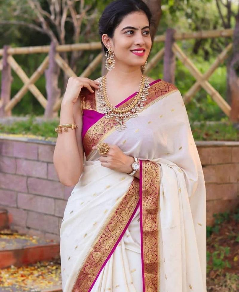 | • | Saree | : | Color- White / Fabric- Silk Blend |