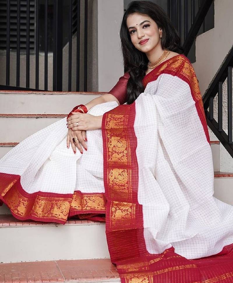 | Product Name | White Red Soft Silk Blend Banarasi Jacuard Work Designer Party Wear Saree With Unstitched Blouse Piece | |