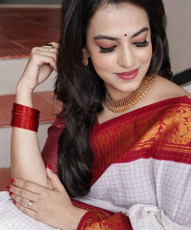| • | Saree | : | Color- White / Fabric- Silk Blend |