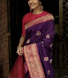 Wine pink soft silk blend banarasi jacuard work designer party wear saree with unstitched blouse piece