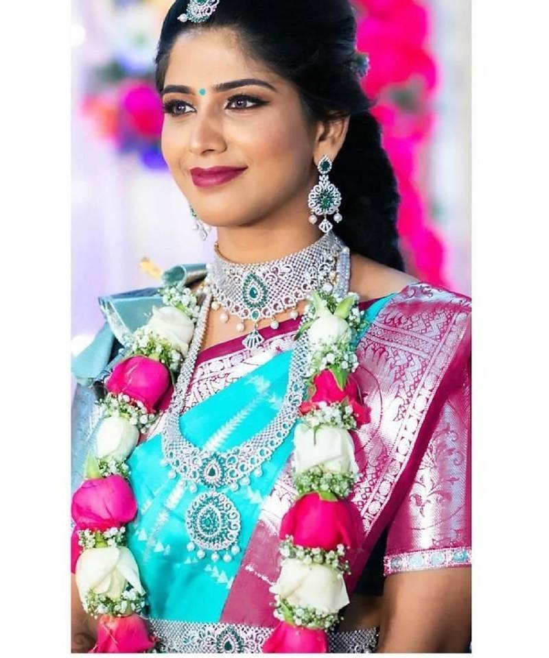 | • | Saree | : | Color- Turquoise / Fabric- Silk Blend |