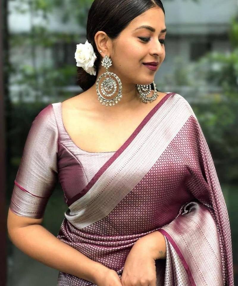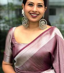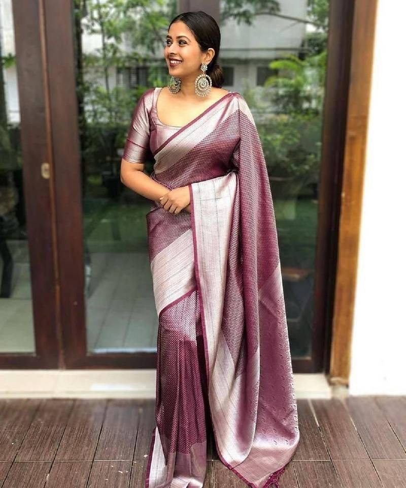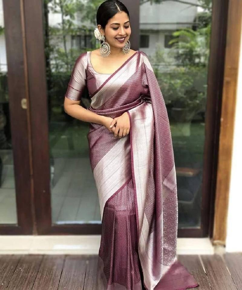 Wine soft silk blend banarasi jacuard work designer party wear saree with unstitched blouse piece