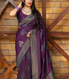 Wine soft silk blend banarasi jacuard work designer party wear saree with unstitched blouse piece