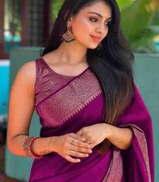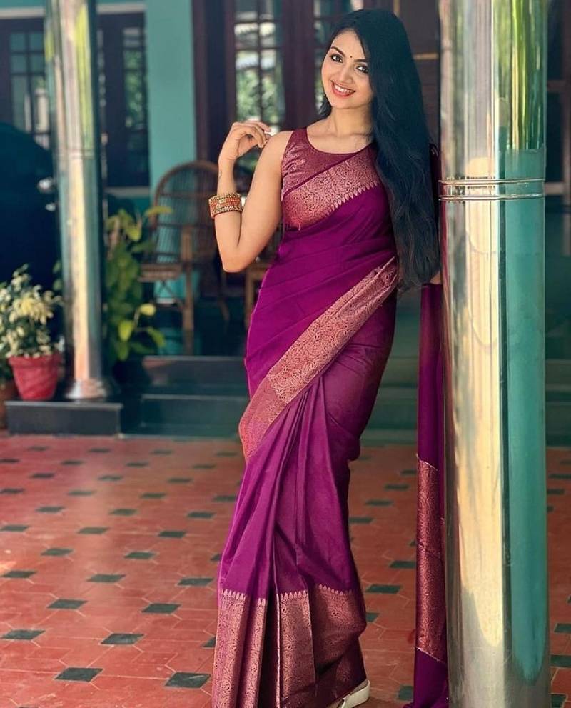 Wine soft silk blend banarasi jacuard work designer party wear saree with unstitched blouse piece
