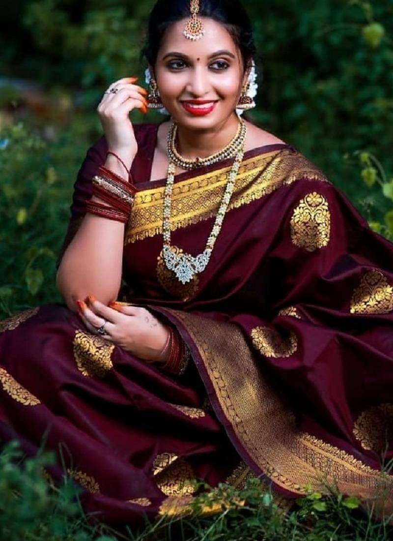 | Product Name | Wine Soft Silk Blend Banarasi Jacuard Work Designer Party Wear Saree With Unstitched Blouse Piece | |
