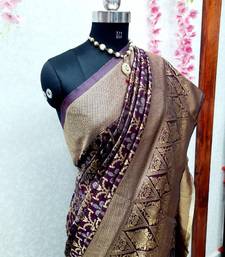 Wine soft silk blend banarasi jacuard work designer party wear saree with unstitched blouse piece