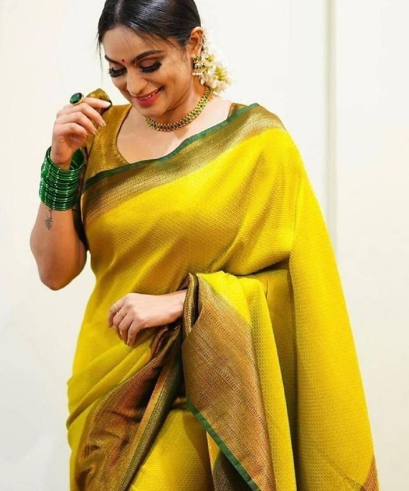 | Product Name | Yellow Green Soft Silk Blend Banarasi Jacuard Work Designer Party Wear Saree With Unstitched Blouse Piece | |