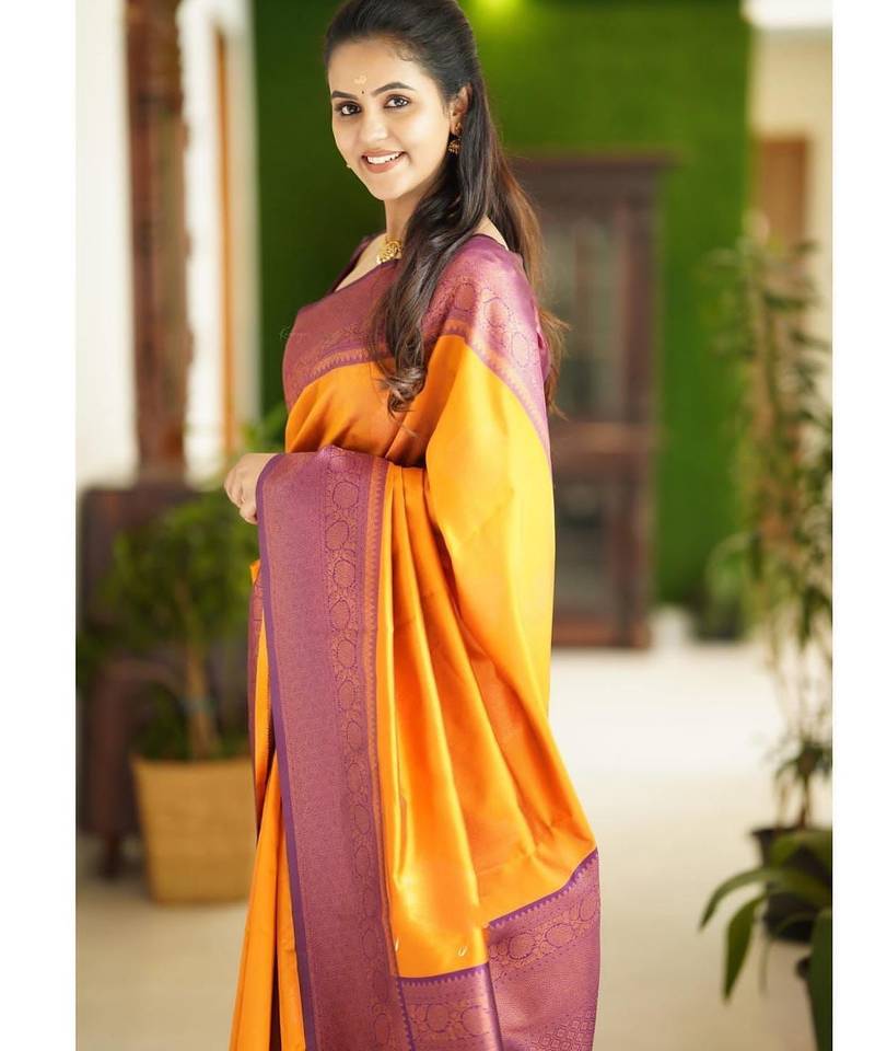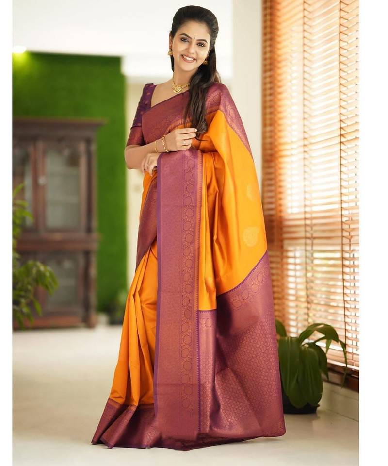 | Product Name | Yellow Purple Soft Silk Blend Banarasi Jacuard Work Designer Party Wear Saree With Unstitched Blouse Piece | |