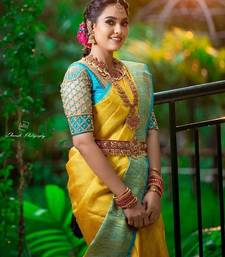 Yellow rama soft silk blend banarasi jacuard work designer party wear saree with unstitched blouse piece