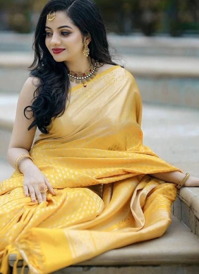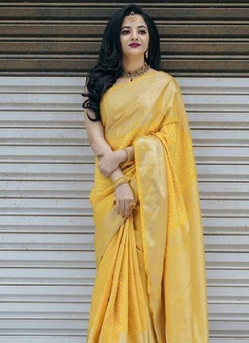 | Product Name | Yellow Soft Silk Blend Banarasi Jacuard Work Designer Party Wear Saree With Unstitched Blouse Piece | |