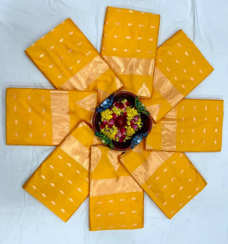 | • | Blouse | : | Color- Dark Yellow / Fabric- Banarasi Silk |