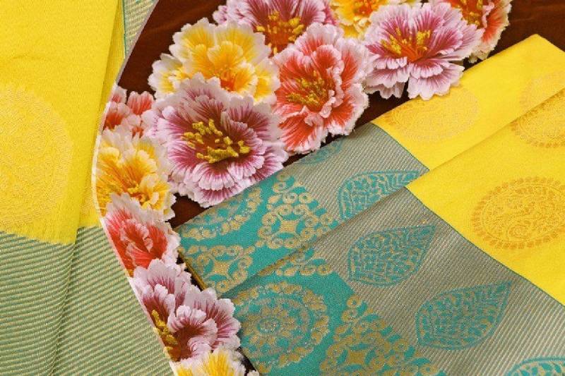 | Product Name | Yellow Turuoise Soft Silk Blend Banarasi Jacuard Work Designer Party Wear Saree With Unstitched Blouse Piece | |