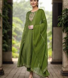 Green embroidered poly silk kurta trousers with dupatta