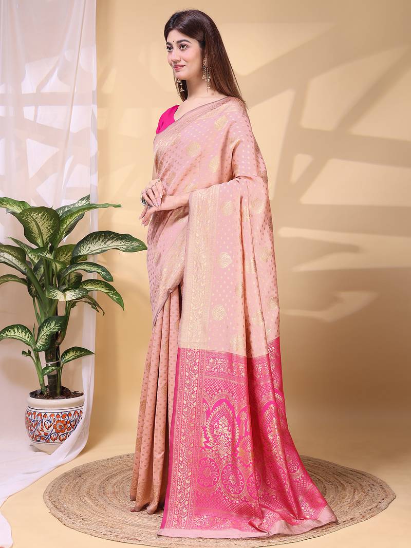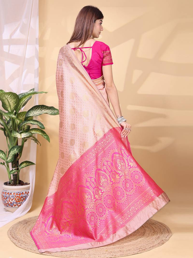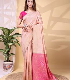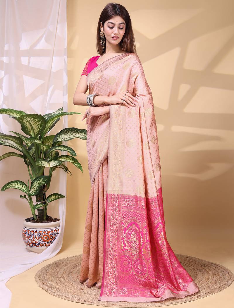 Babypink color weaving jacquard traditional saree with blouse piece