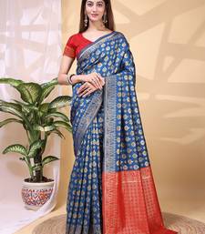Blue color weaving jacquard traditional saree with blouse piece