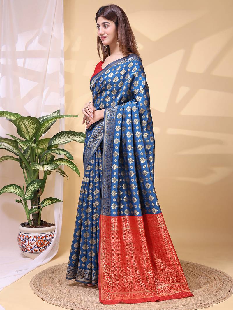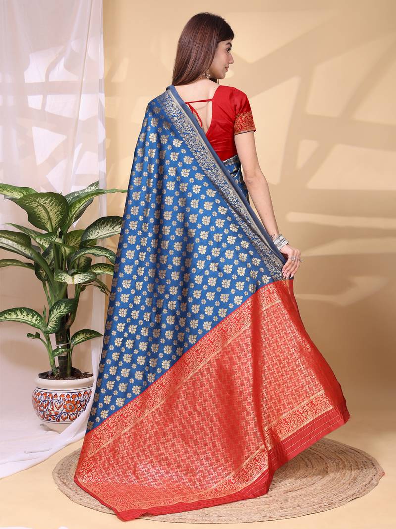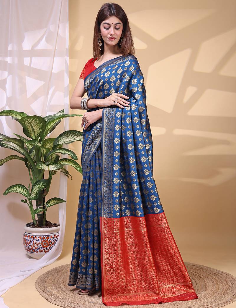 | Product Name | Blue Color Weaving Jacquard Traditional Saree With Blouse Piece | |