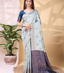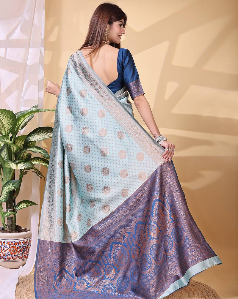 Skyblue color weaving jacquard traditional saree with blouse piece