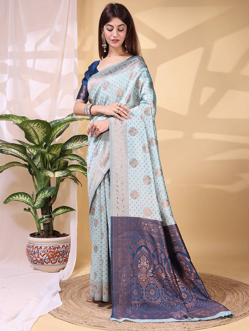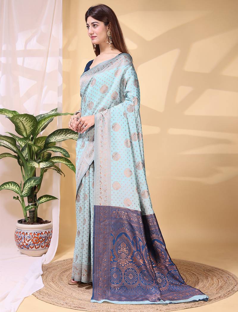 | Product Name | Skyblue Color Weaving Jacquard Traditional Saree With Blouse Piece | |
