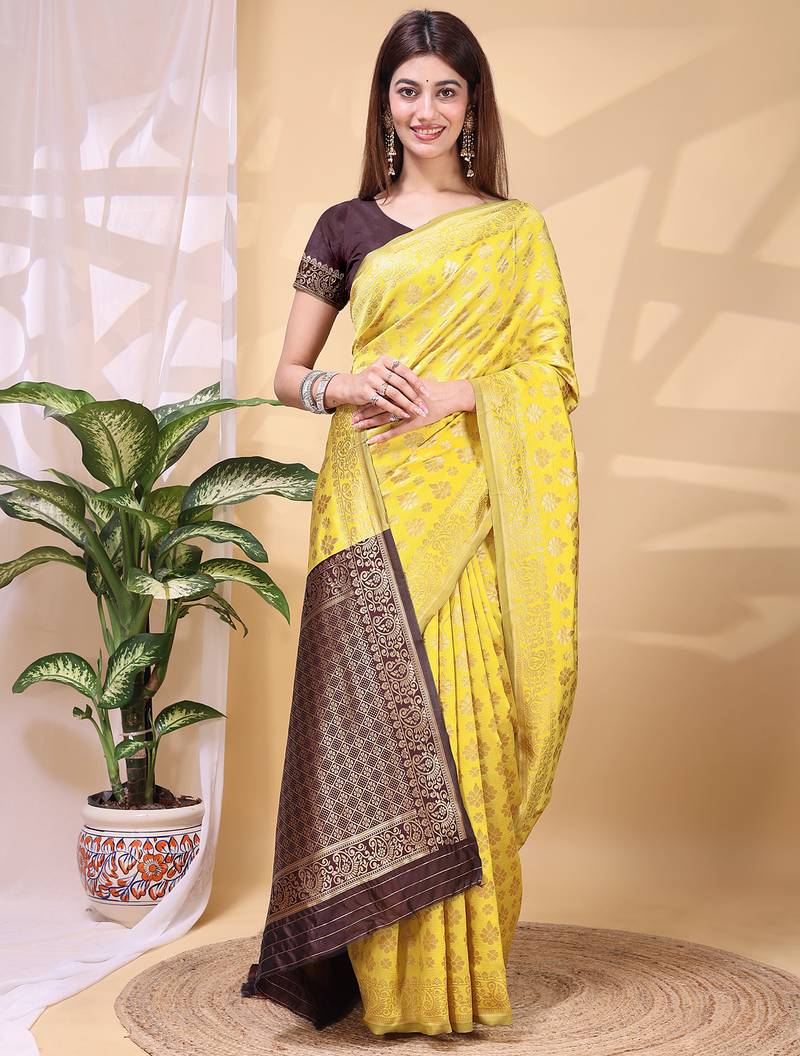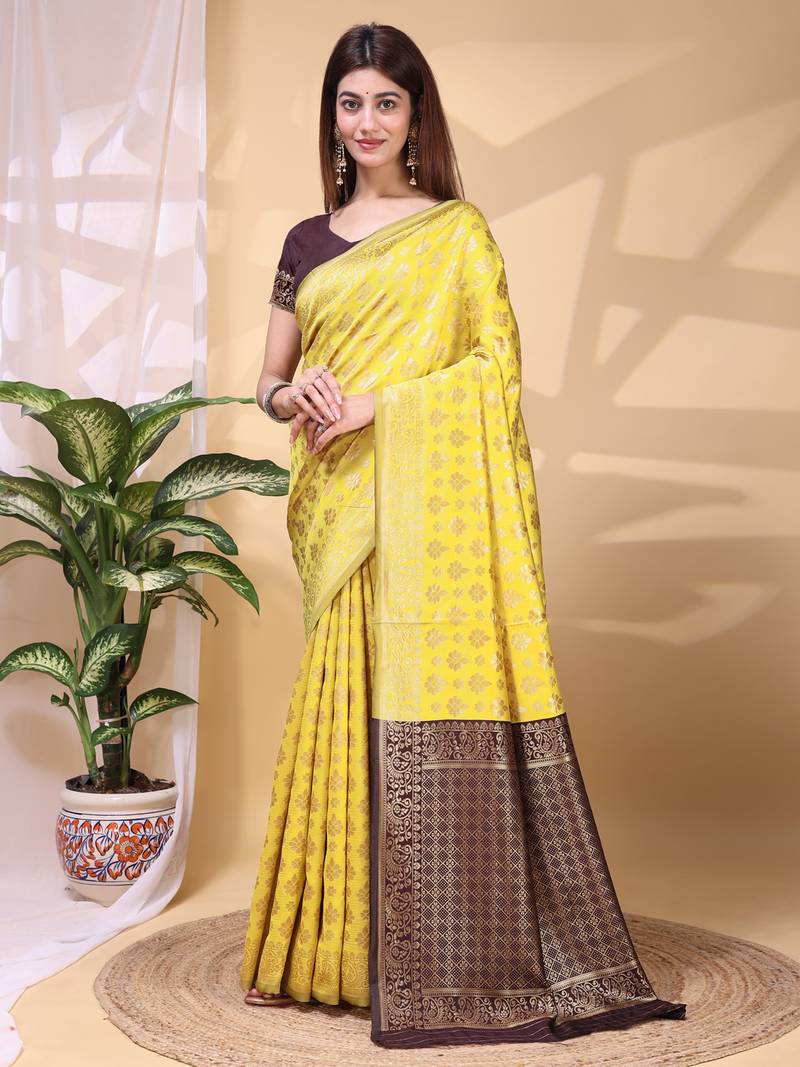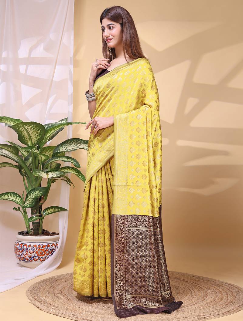 | Product Name | Yellow Color Weaving Jacquard Traditional Saree With Blouse Piece | |