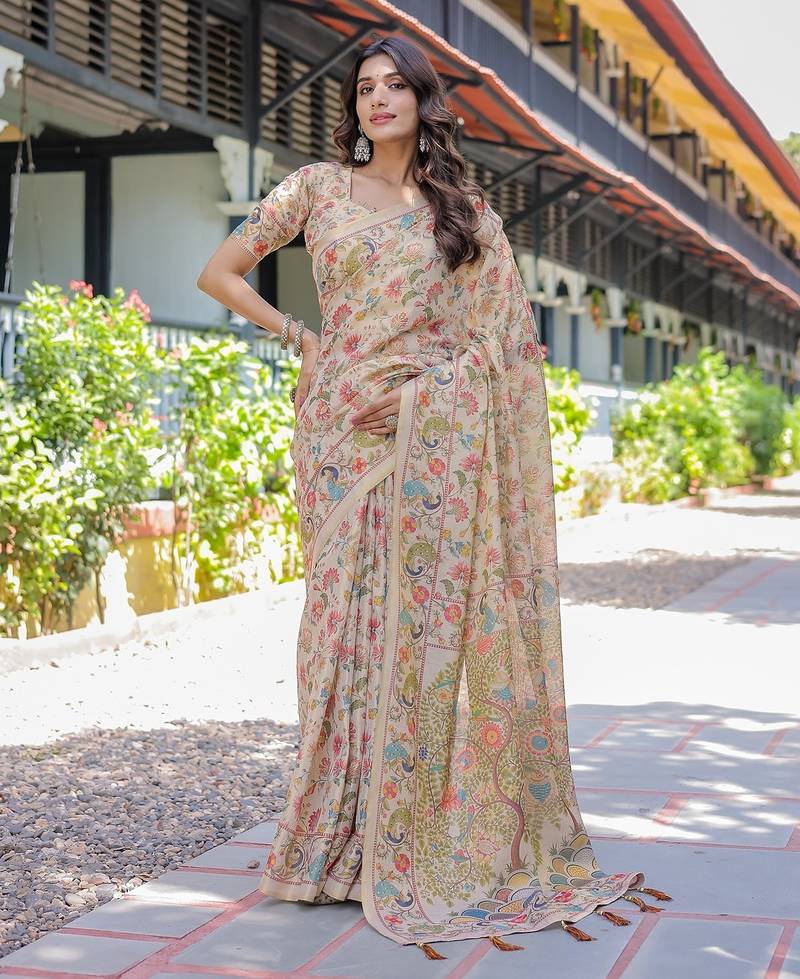 | Product Name | Cotton Cotton Blend Handloom Saree With Floral Motif And Tassel Border | |