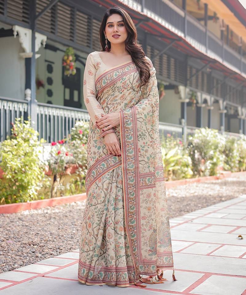 | Product Name | Cotton Handloom Saree With Digital Floral Print And Tassels Festive Wear | |