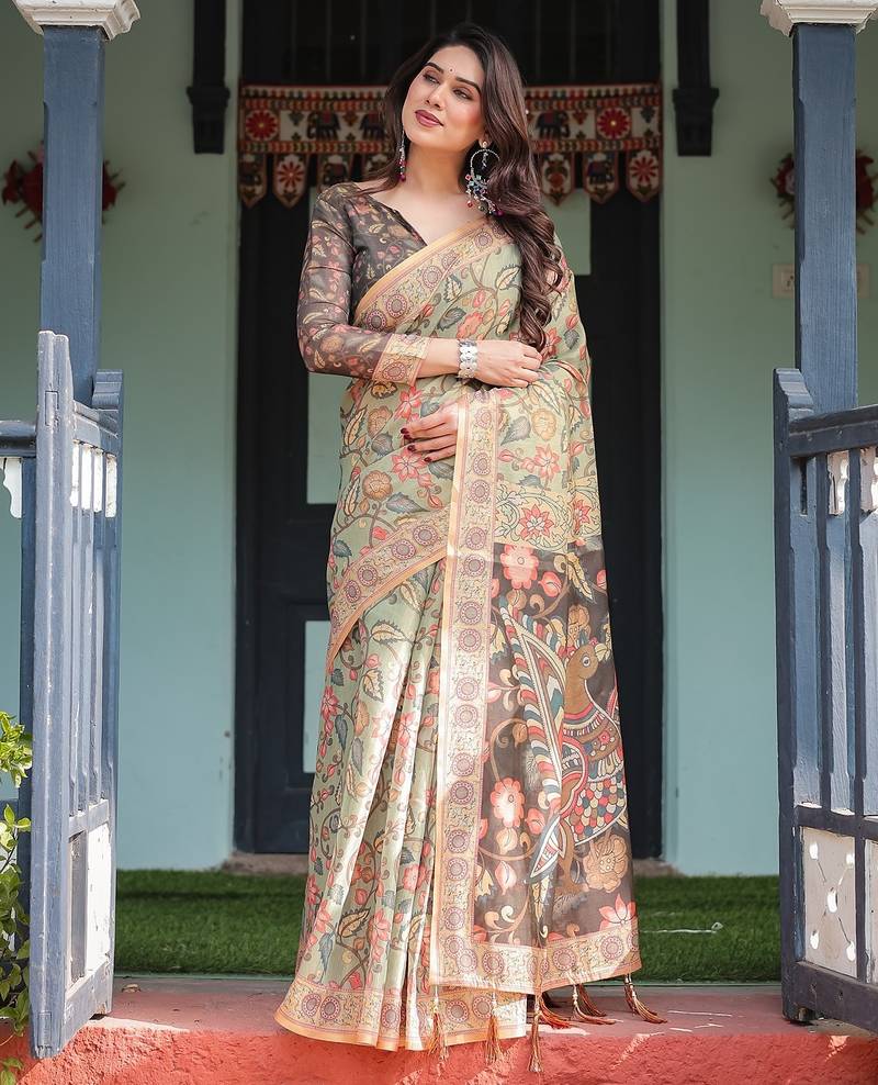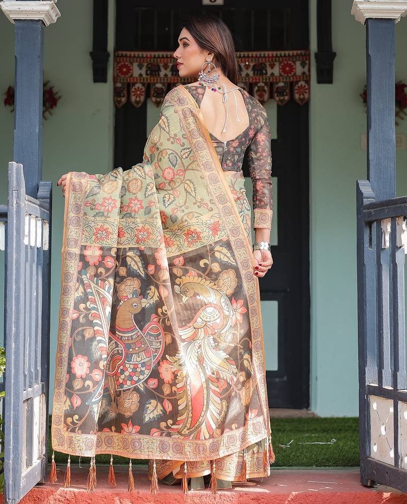 | Product Name | Cotton Handloom Saree With Digital Floral Print And Tassels Festive Wear | |