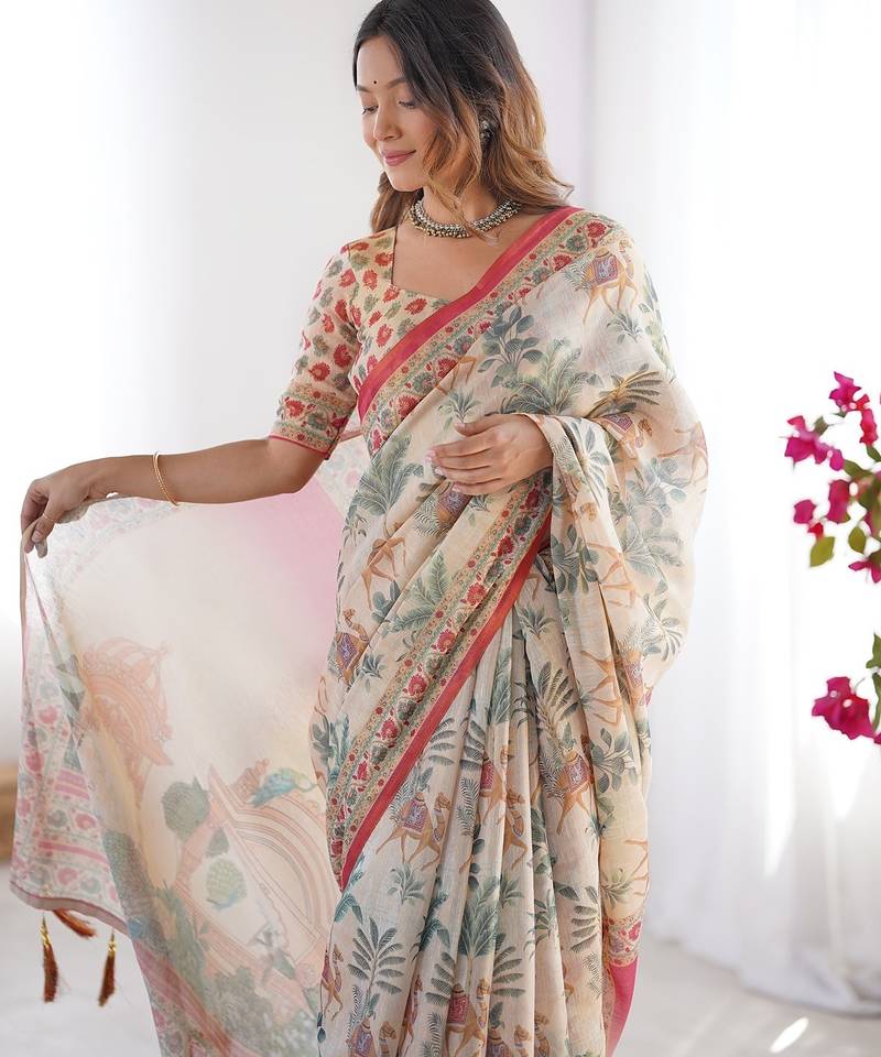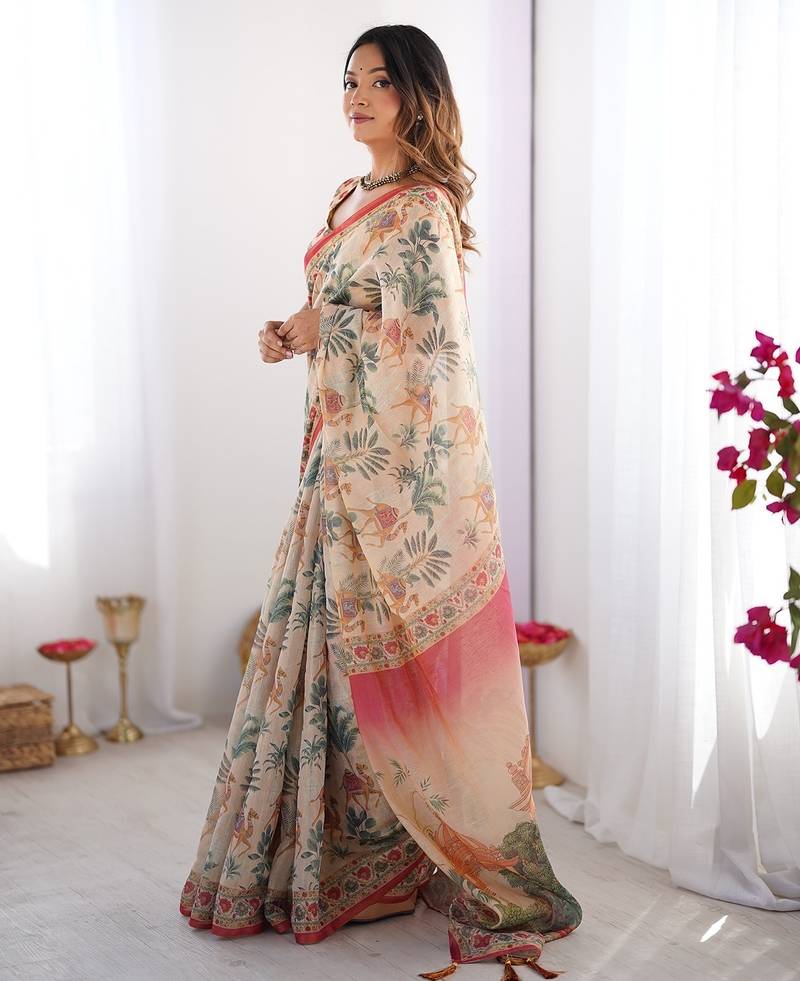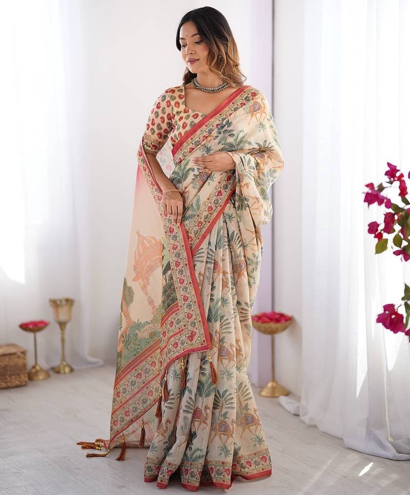 | Product Name | Cotton Handloom Saree With Digital Floral Print And Tassels Festive Wear | |