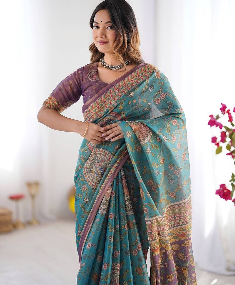 | Product Name | Designer Floral Print Handloom Cotton Saree With Tassel Pallu & Blouse | |