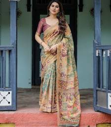 Designer floral print handloom cotton saree with tassel pallu & blouse
