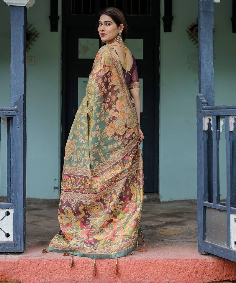 | Product Name | Designer Floral Print Handloom Cotton Saree With Tassel Pallu & Blouse | |
