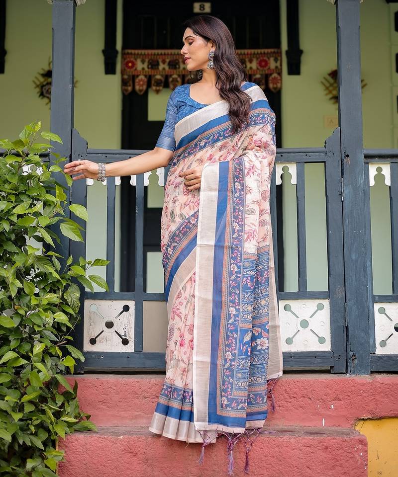 | Product Name | Designer Floral Print Handloom Linen Saree With Tassel Pallu & Blouse | |