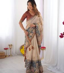 Elegant handloom cotton saree with floral print & tassel edges 5.5m + 0.8m blouse