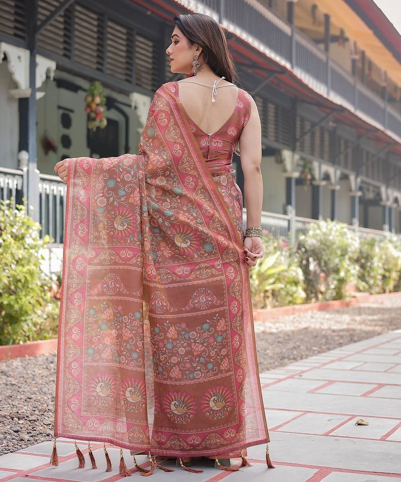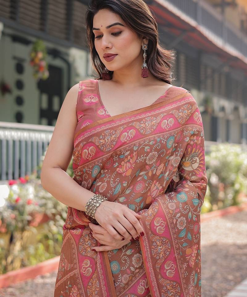 | Product Name | Ethnic Handloom Cotton Saree With Colorful Floral Print And Matching Blouse | |