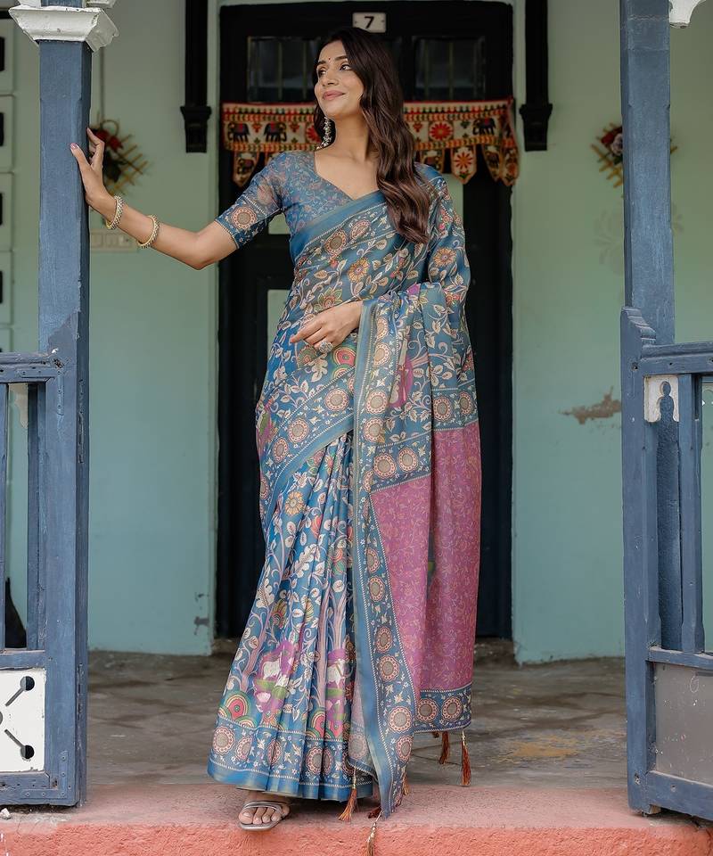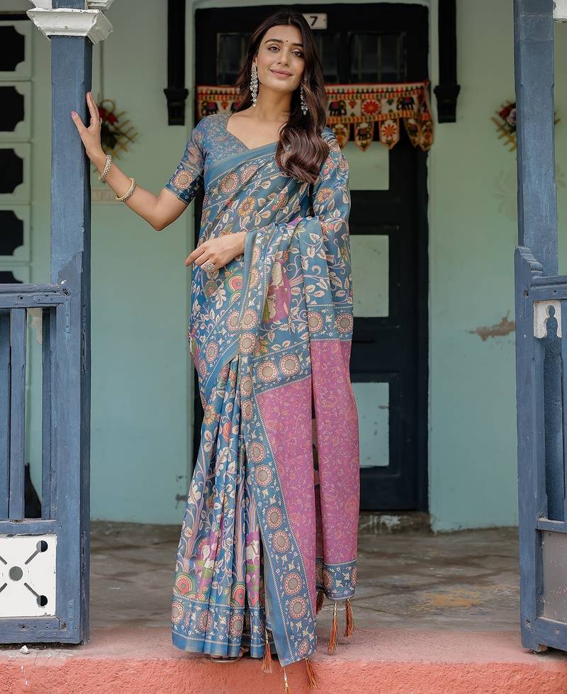 | Product Name | Ethnic Handloom Cotton Saree With Colorful Floral Print And Matching Blouse | |