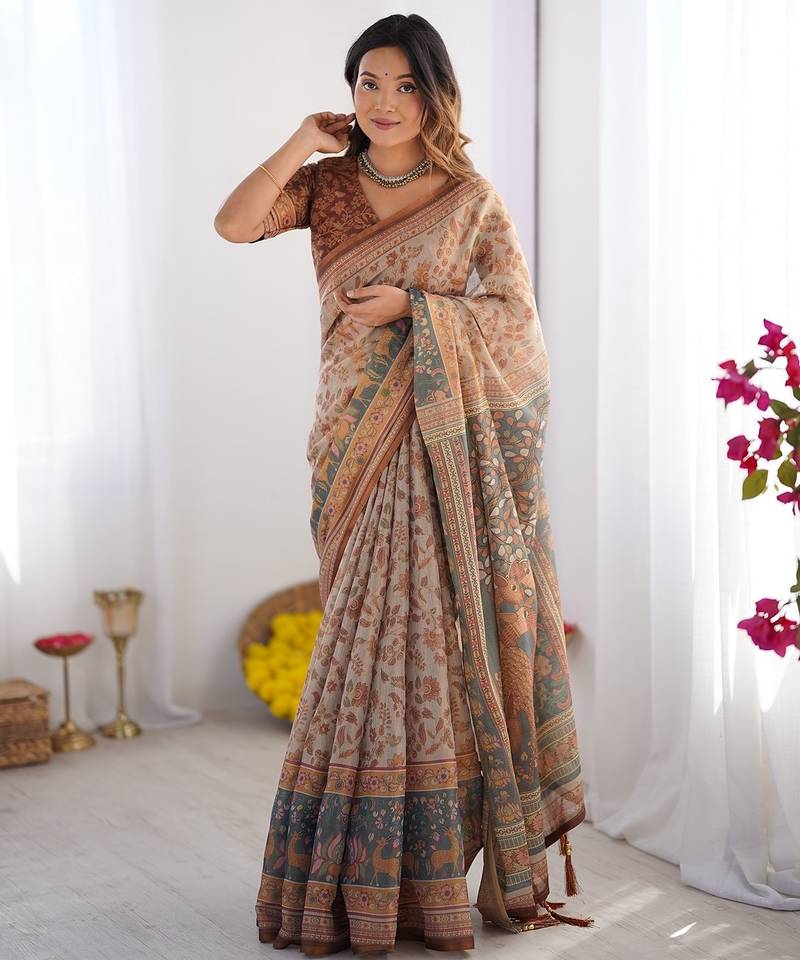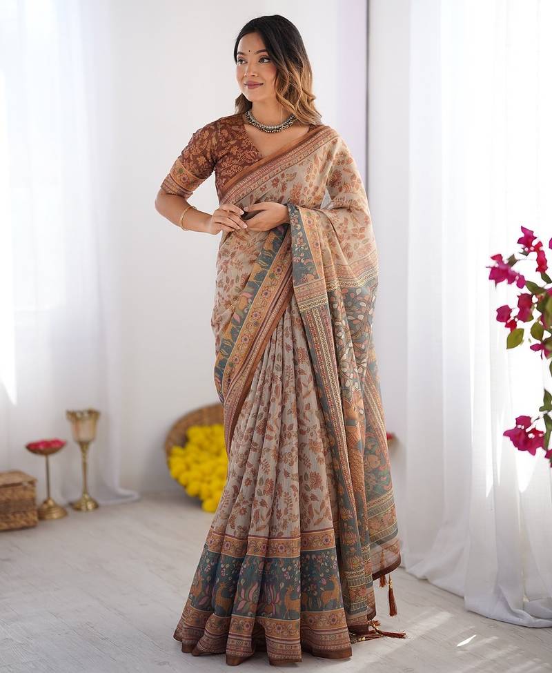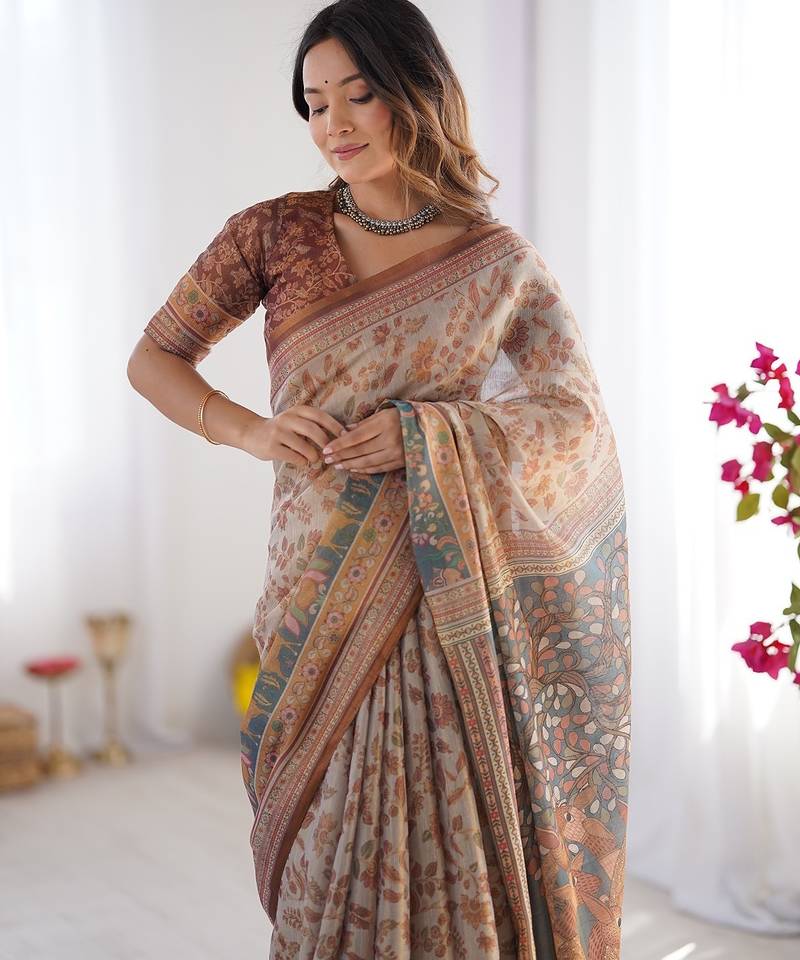 | Product Name | Ethnic Handloom Cotton Saree With Colorful Floral Print And Matching Blouse | |