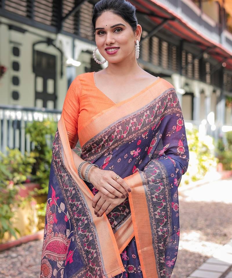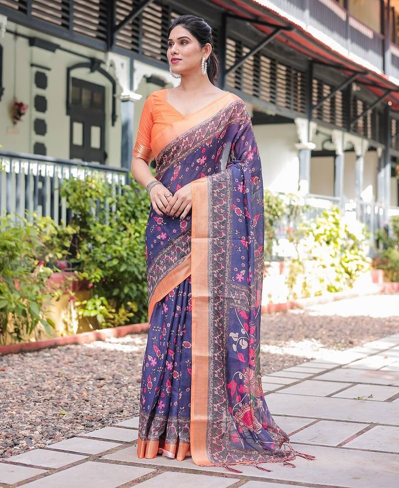 | Product Name | Ethnic Handloom Linen Saree With Colorful Floral Print And Matching Blouse | |