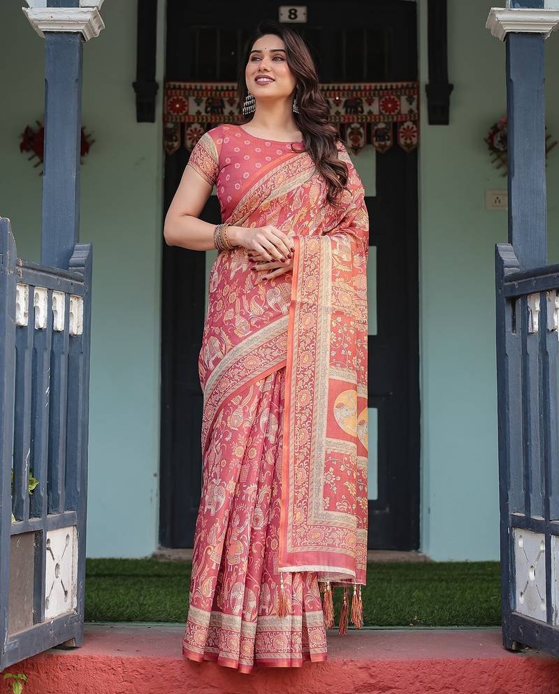 Everyday elegance handloom cotton floral saree with blouse piece 5.5m