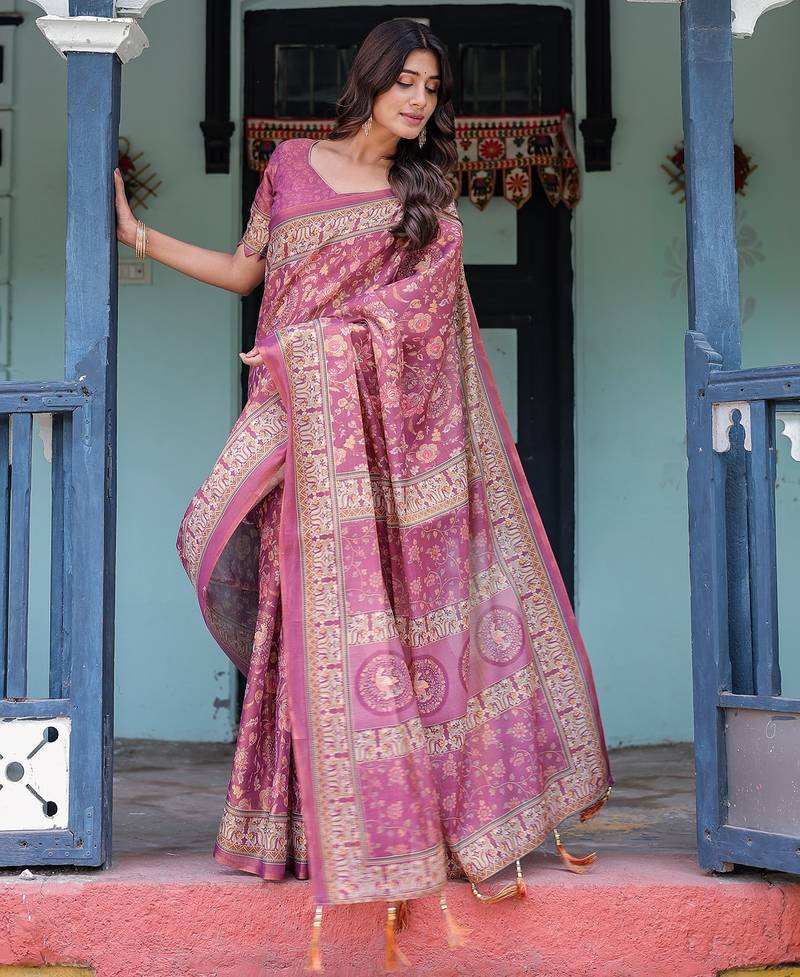 Everyday elegance handloom cotton floral saree with blouse piece 5.5m