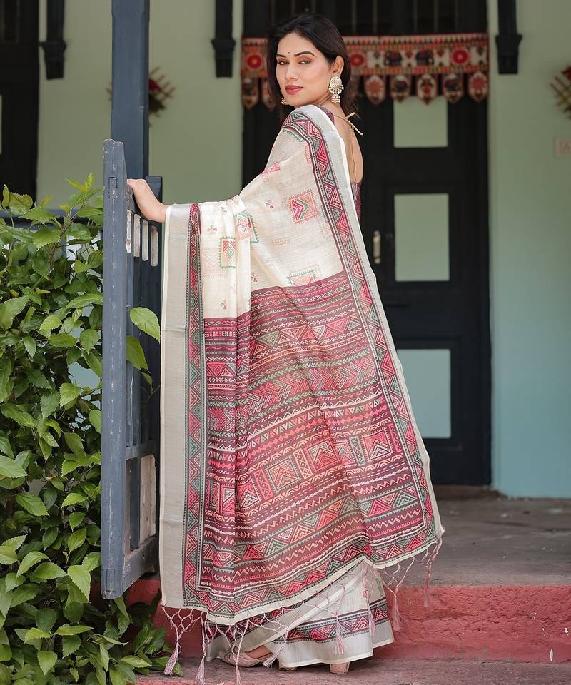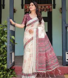 Everyday elegance handloom linen floral saree with blouse piece 5.5m