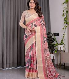 Everyday elegance handloom linen weaved with golden zari floral saree with blouse piece 5.5m