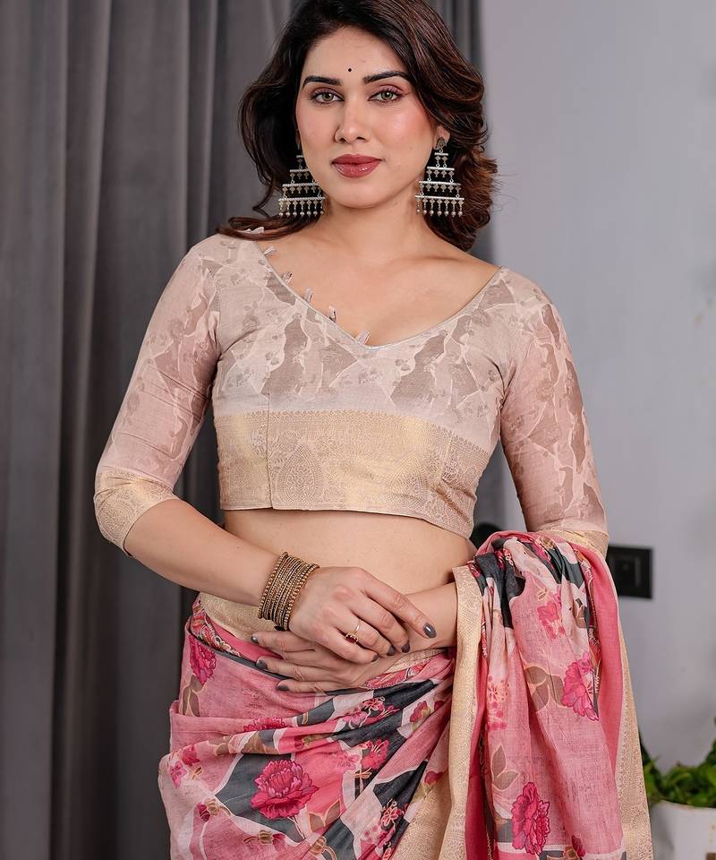 | Product Name | Everyday Elegance Handloom Linen Weaved With Golden Zari Floral Saree With Blouse Piece 5.5m | |