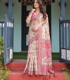 Festive ready handloom cotton saree with floral artwork & matching blouse