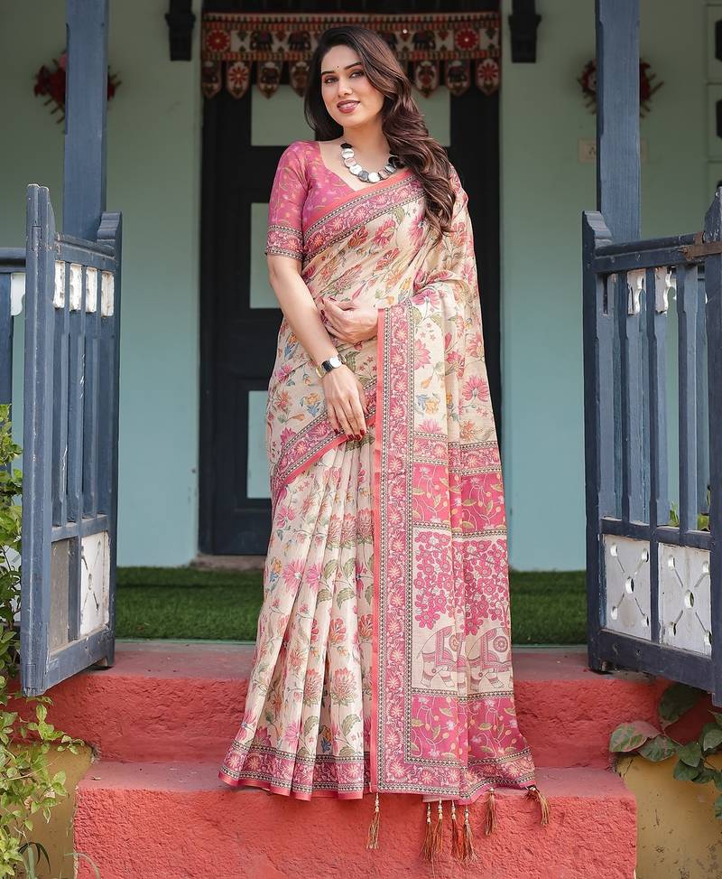 | Product Name | Festive Ready Handloom Cotton Saree With Floral Artwork & Matching Blouse | |