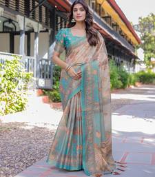 Festive ready handloom cotton saree with floral artwork & matching blouse